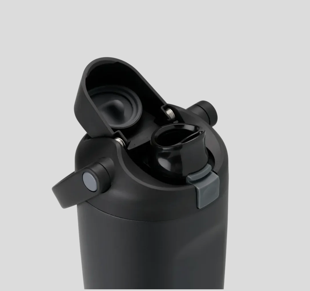 Þeir eru einstakir að því leiti að það er bæði hægt að drekka beint úr innbyggðu röri en einnig er hægt að hella uppí sig vatni beint úr flöskunni. Hann lekur ekki, opnast með því að ýta á takka og lokast með því að ýta lokinu aftur niður. Hann heldur vatninu köldu í margar klukkustundir og er með handfangi. Sem sagt - hinn fullkomni vatnsbrúsi!