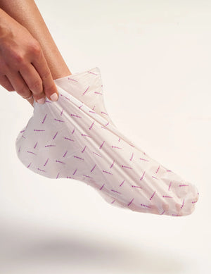 Njóttu smá heimadekurs með þessum frábæra rakagefandi fótamaska. Maskinn er fullur af frábærum olíum sem virka vel á þurran og þreyttar fætur og skilar þeim silkimjúkum. Róandi lavender ilmur hjálpar til með að slaka vel á á meðan.