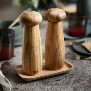 Salt og piparkvörn úr fallegum tekkvið. Keramik kvörn frá CrushGrind sem hægt er að stilla eftir fínleika. Þær geta malað bæði salt og pipar en einnig aðrar tegundir af kryddum.