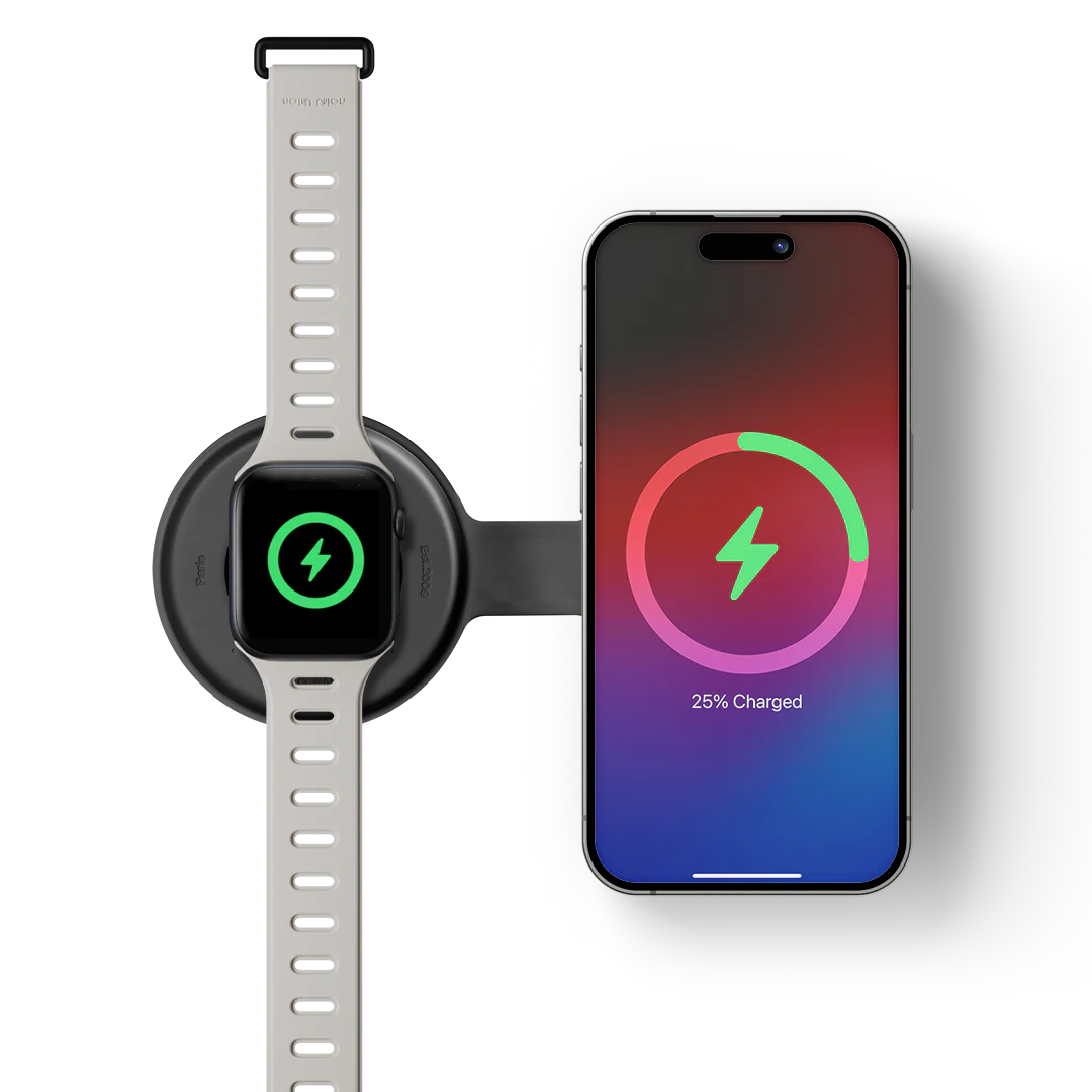 Hafðu símann stanslaust hlaðinn með þessari Qi2-knúna hleðslustöð. Hún er einstaklega þunn, létt og samanbrjótanleg, sem gerir hana að þægilegum ferðafélaga til að hlaða öll tæki þín á ferðinni. Þegar hún er opnuð breytist hún í hleðslustöð fyrir mörg tæki – settu hana upp hvar sem er og skiptu á milli síma, heyrnartóla, Apple Watch og annarra Qi-samhæfra tækja.