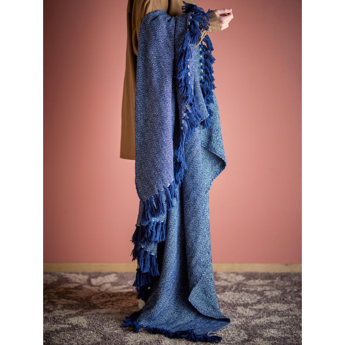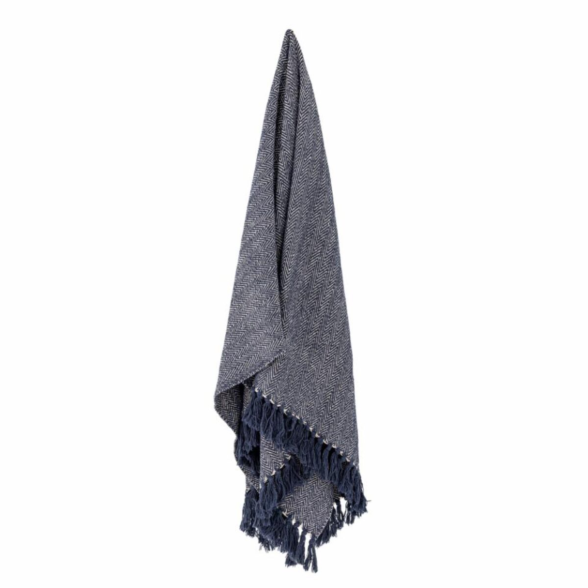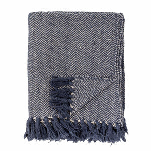 Bómullarteppi - Blátt Síldarbeinamynstur