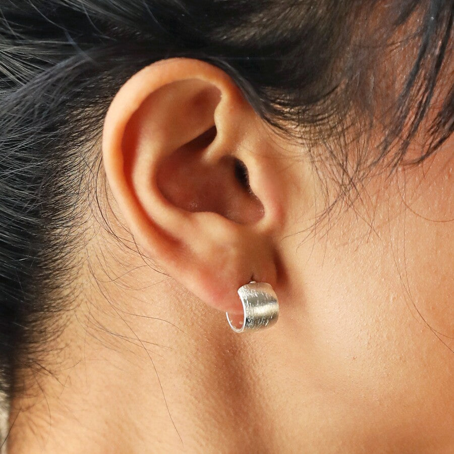 Breiðir eyrnalokkar með fallegri áferð. Silfur