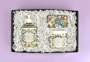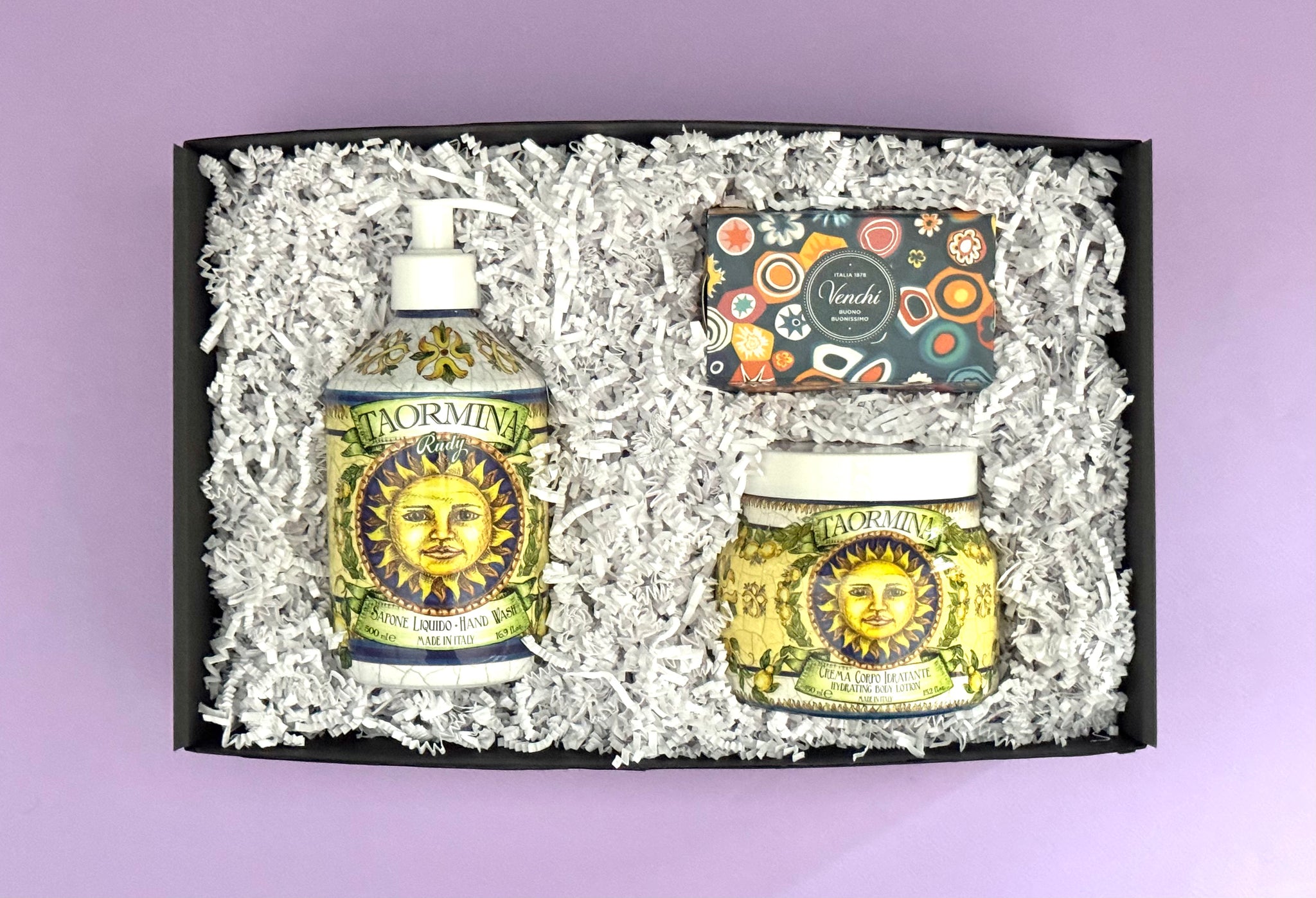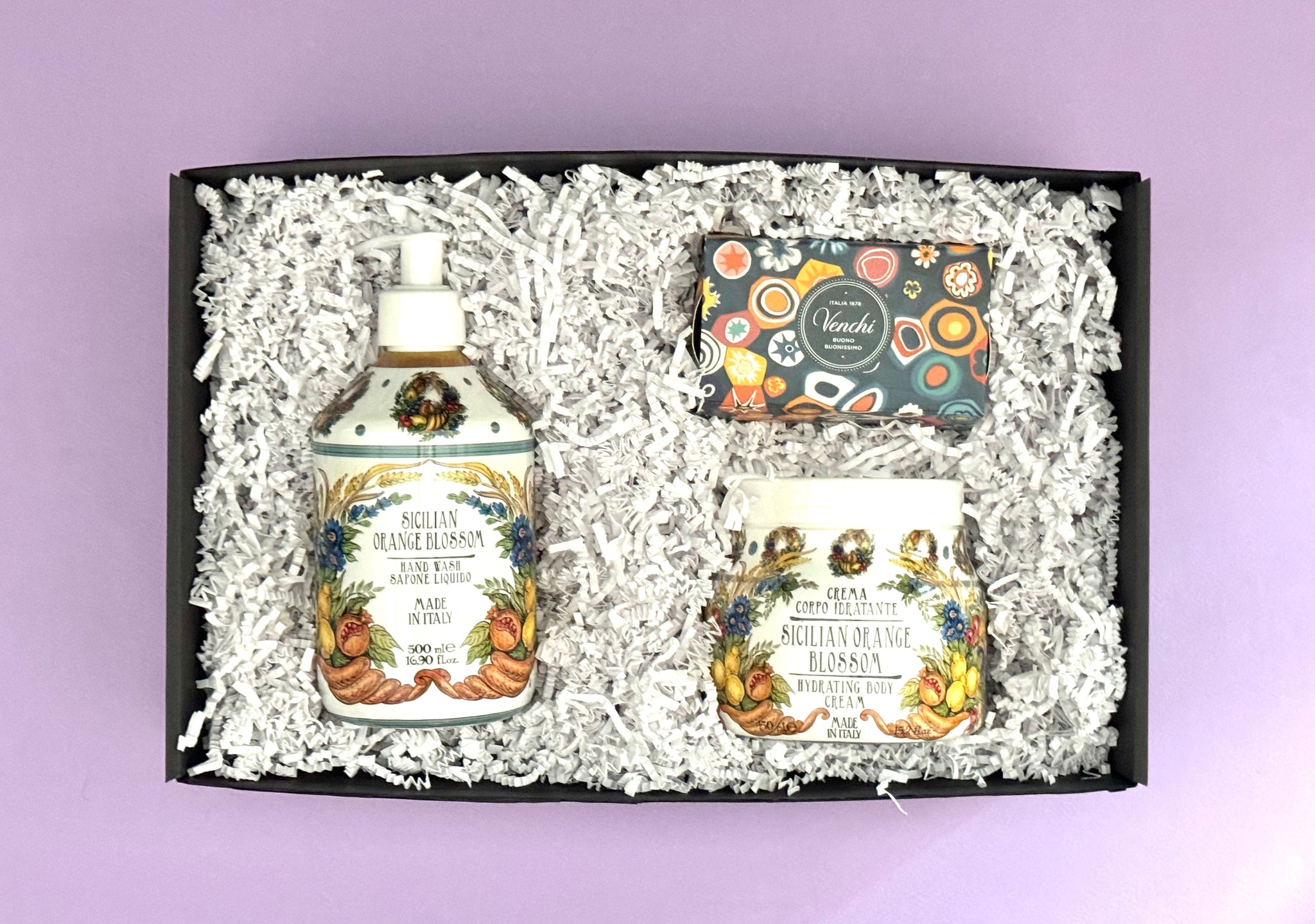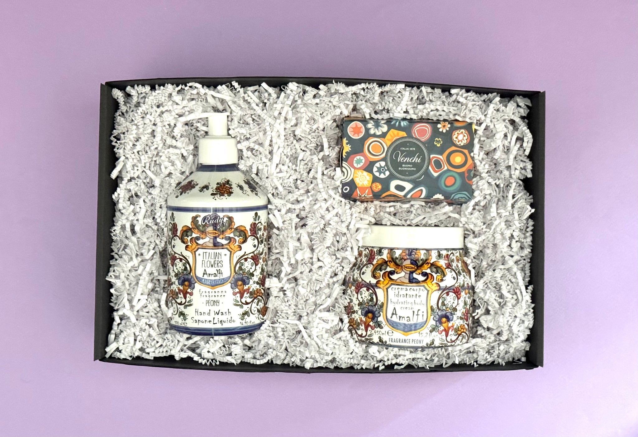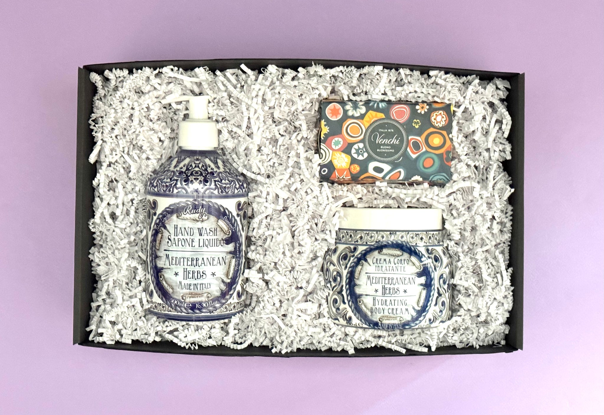 ...alla! Boxið inniheldur æðislegar ítalskar húðvörur frá fjölskyldufyrirtækini Rudy Profumi. Þær eru ekki bara fallegar heldur ilma æðislega! Boxið inniheldur handsápu, líkamskrem og Venchi konfekt öskju með 5 molum. Frábær tækifærisgjöf, afmælisgjöf eða þakklætisgjöf.