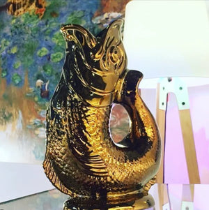 Dásamlega falleg handgerð postulíns kanna sem er í laginu eins og fiskur.