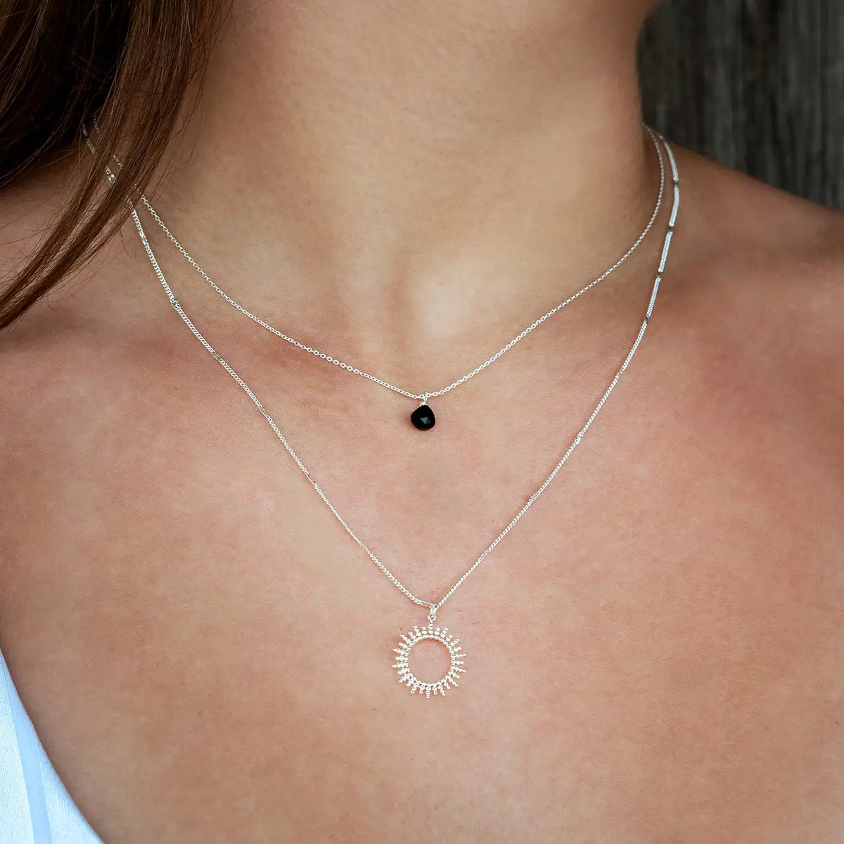 Fallegt og stílhreint tveggja laga hálsmen úr silfur ryðfríu stáli og glerperlu frá Vinoos.