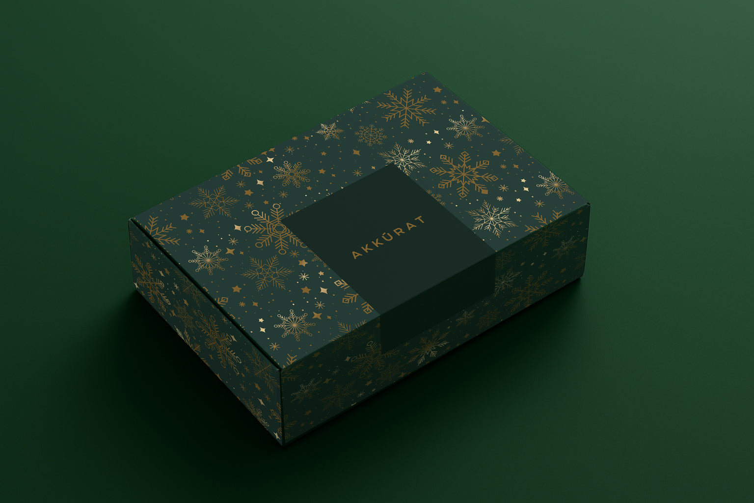 Grænt gjafabox með gylltum stjörnum. Hvít og gyllt innan í