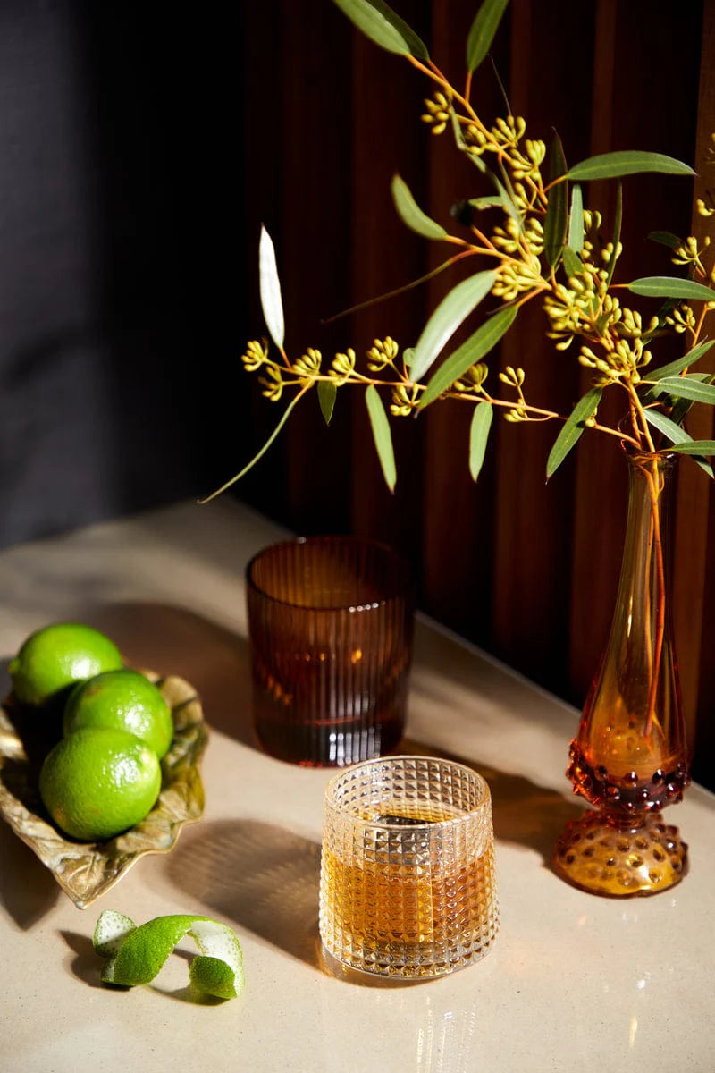 Our fluted, stylish high + lowball and beaded rocking glasses allow you to get creative and elevate the simplest of libations.
