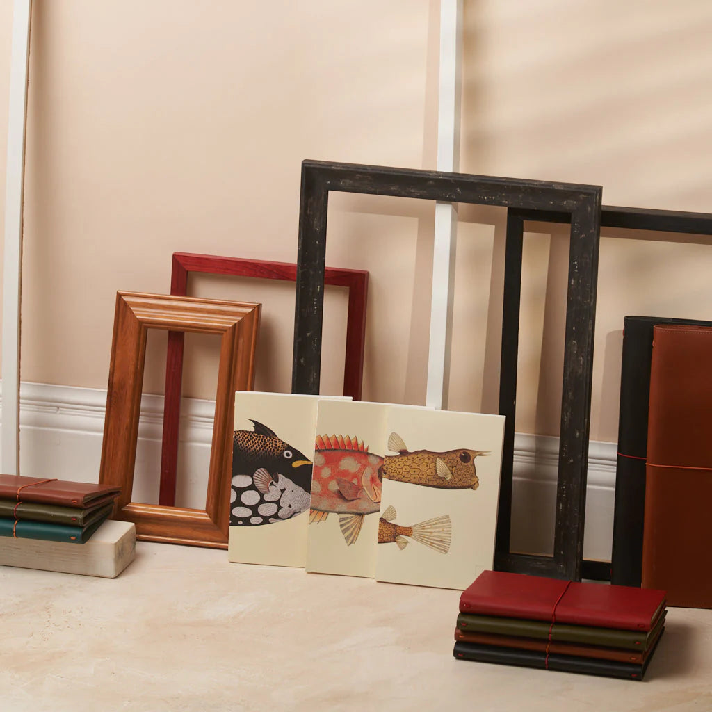 Enjoy our delightful animal companions range; surprising pairs who celebrate unlikely yet beautiful friendships. Choose the colourful and unusual fish of our reef collection; or select the traditional beauty of Japanese woodblock printing with our Japan set. The illustrations grace both the front and back covers, creating a stunning composition when the book is opened.
