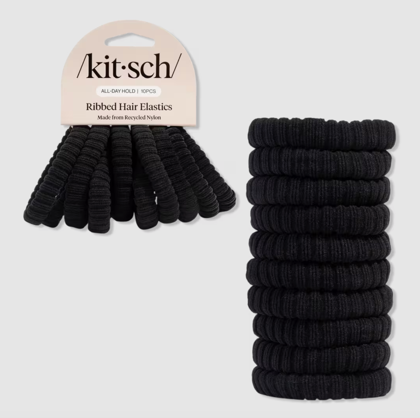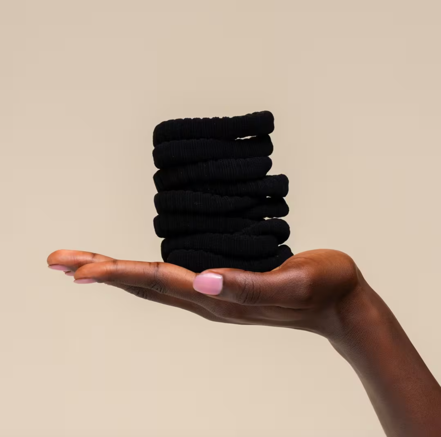 Recycled Fabric Ribbed Hair Elastics Svartar