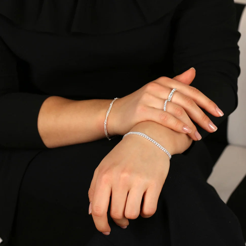 Gold or silver plated brass with cubic zirconia stones.