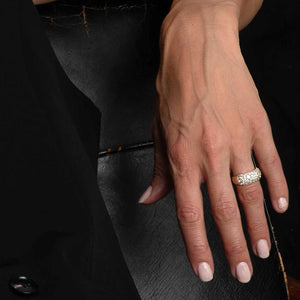 Fallegur breiður hringur þakinn steinum.