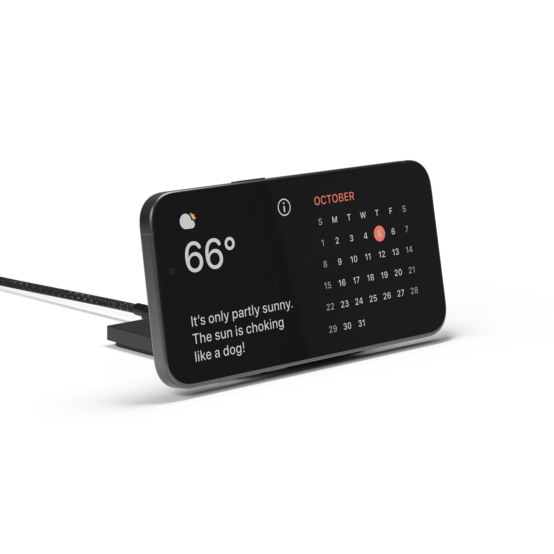 Hágæða Qi2 hleðslustöð sem gefur þér það besta af öllu: hvort sem þú vilt hlaða með símann liggjandi eða standandi. Virkar fyrir síma þinn og önnur Qi-samhæf tæki, og margt fleira. Öflug hleðsla, víðtæk samhæfni og sérsniðnar stillingar til að finna hleðslulausn sem hentar þér og rýminu þínu.